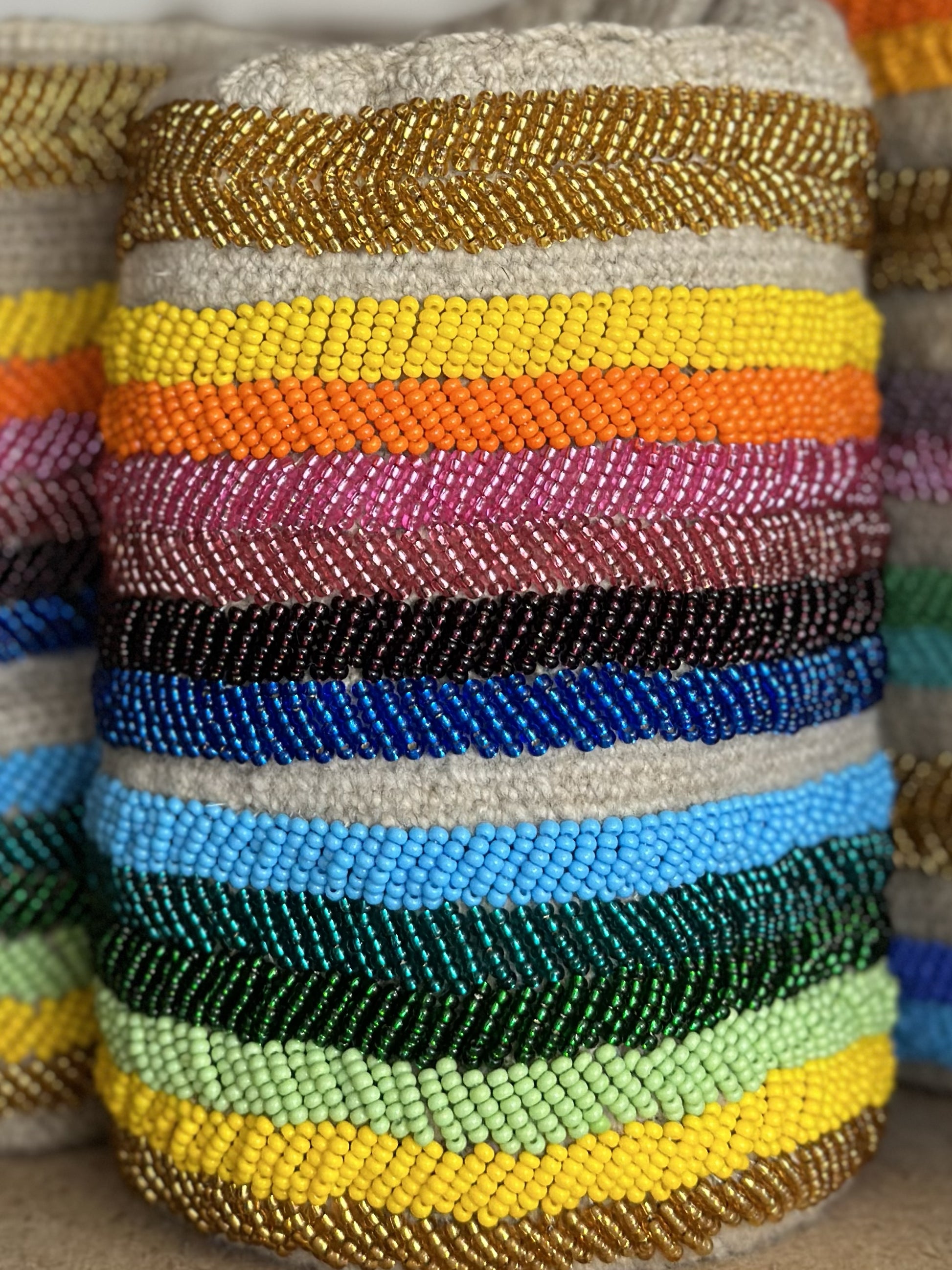 Nuestras mochilas Arhuacas* han sido cuidadosamente tejidas a mano por mujeres indígenas a lo largo de 3 semanas.