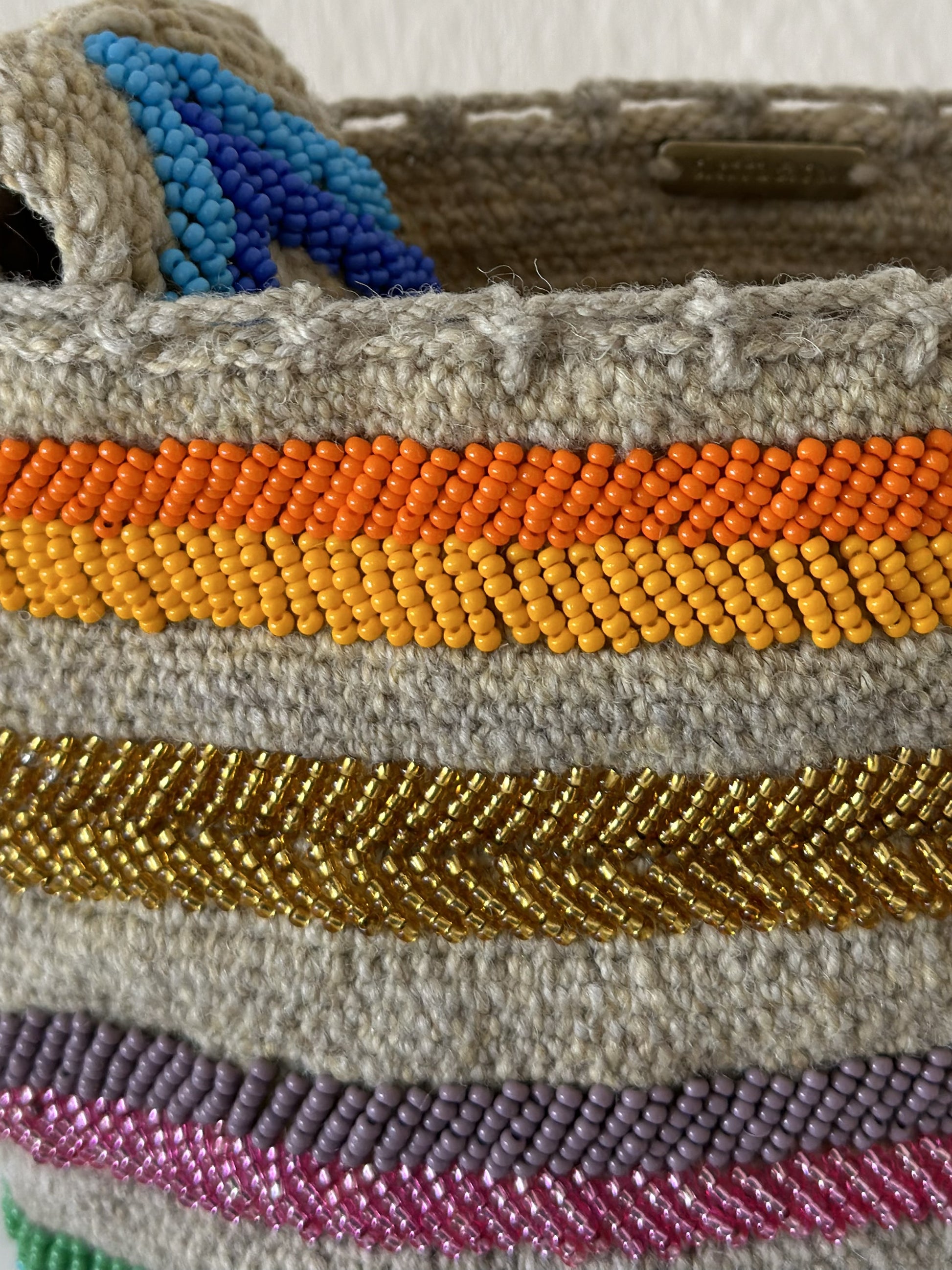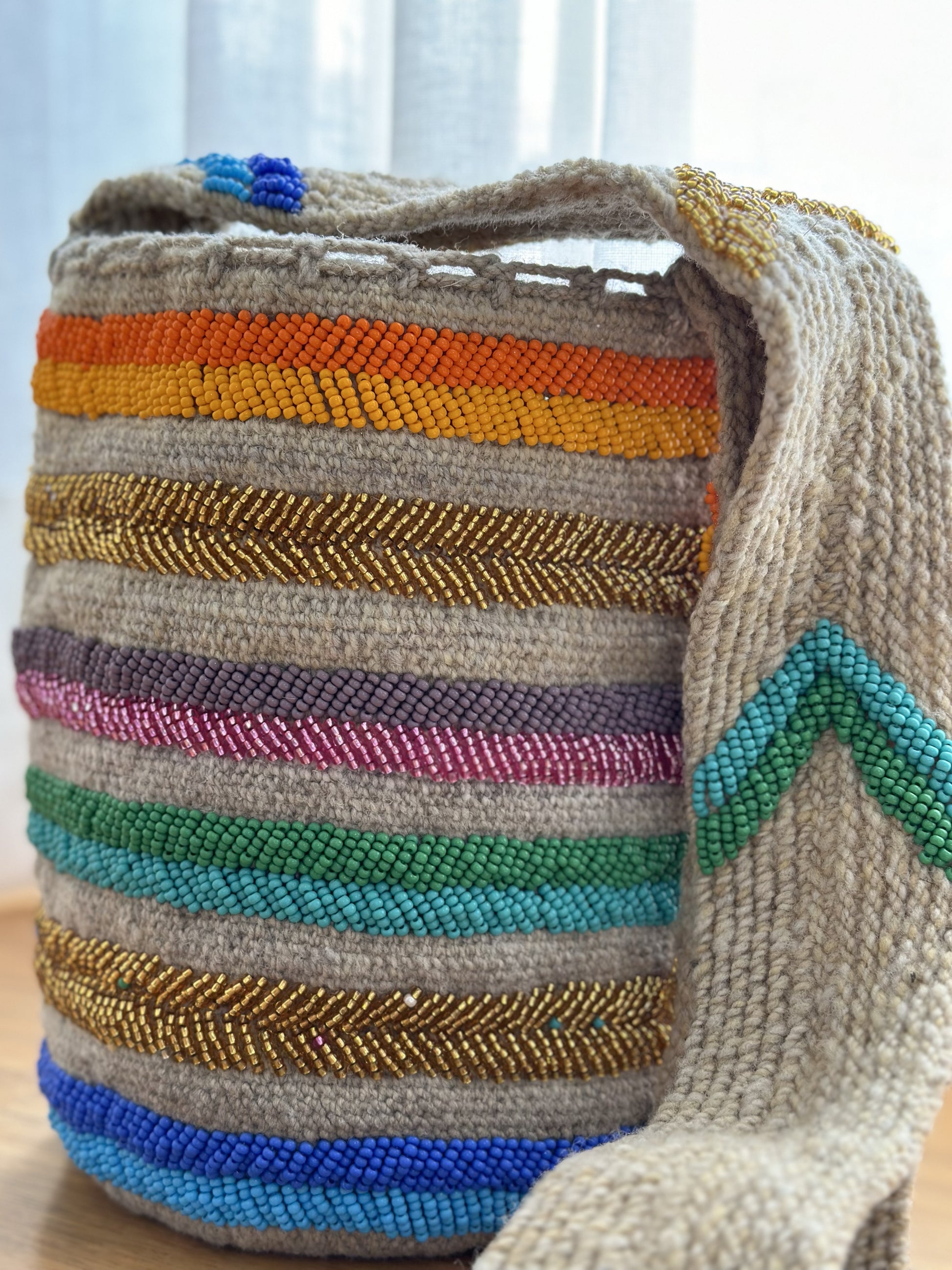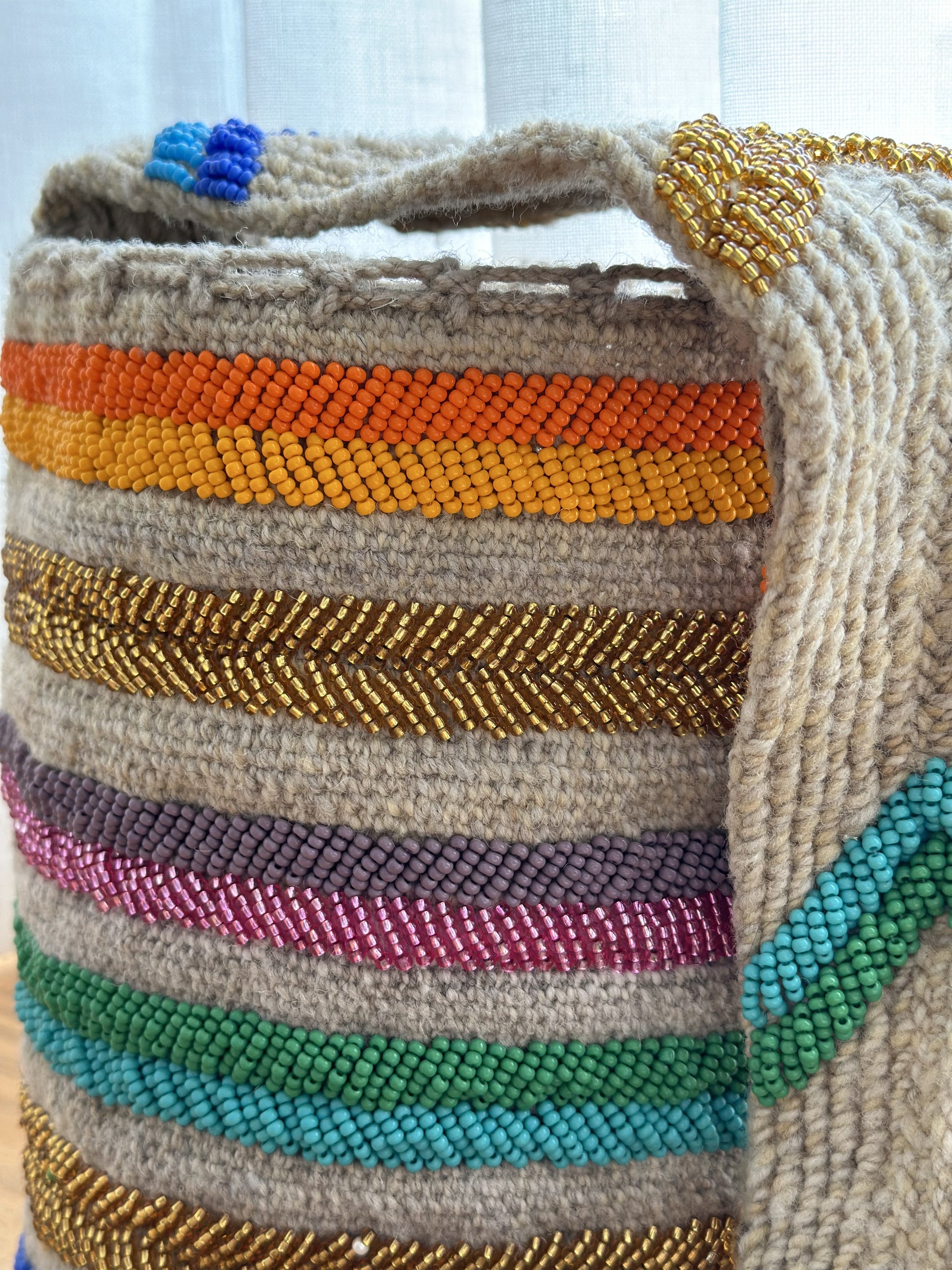Nuestras mochilas Arhuacas* han sido cuidadosamente tejidas a mano por mujeres indígenas a lo largo de 3 semanas.