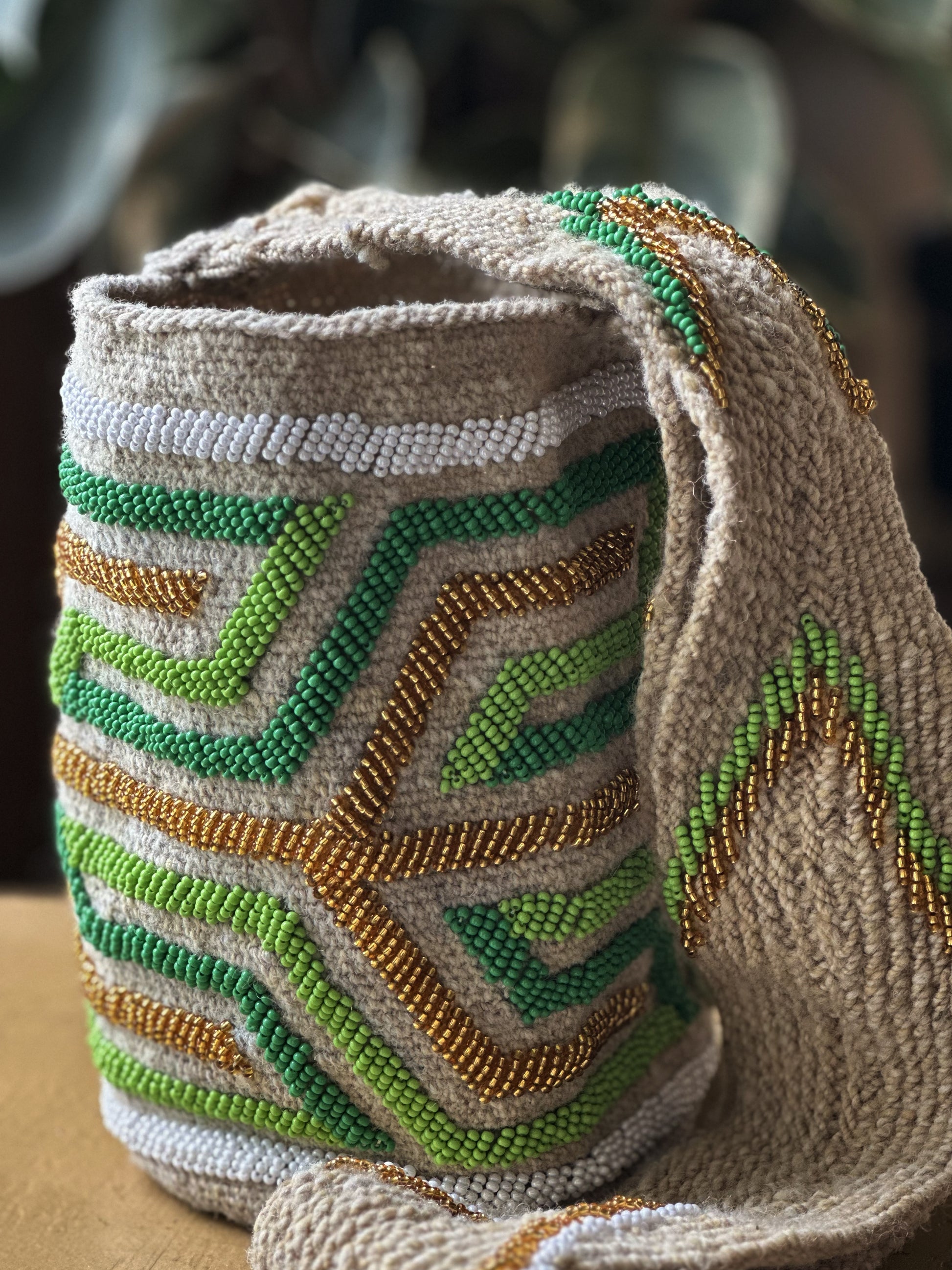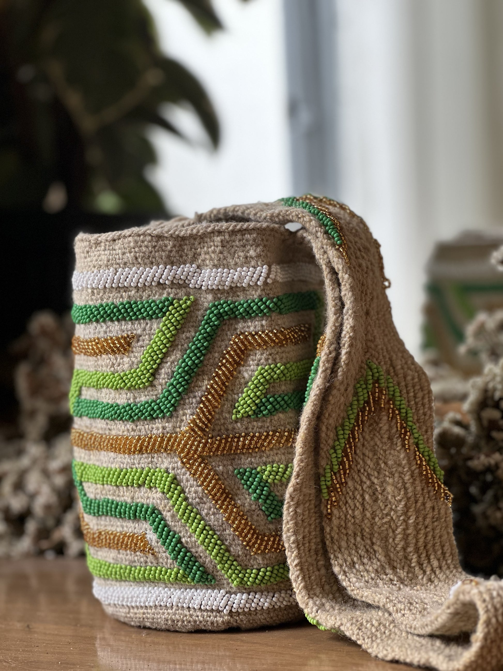 Nuestras mochilas Arhuacas* han sido cuidadosamente tejidas a mano por mujeres indígenas a lo largo de 3 semanas.