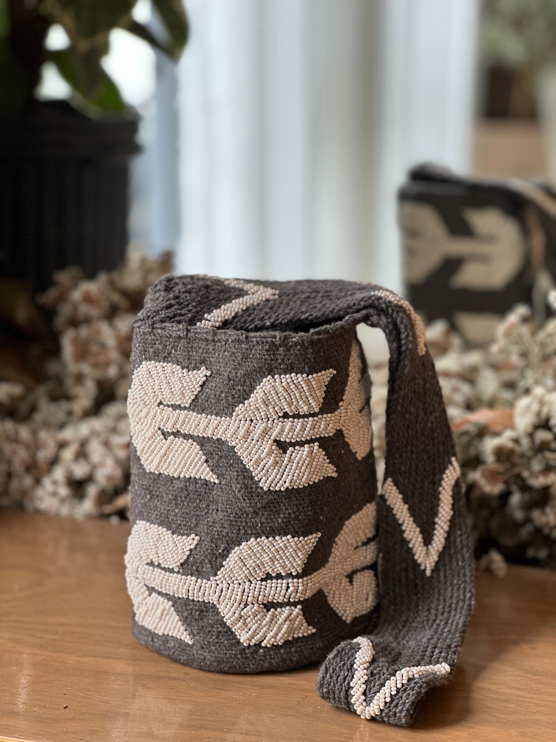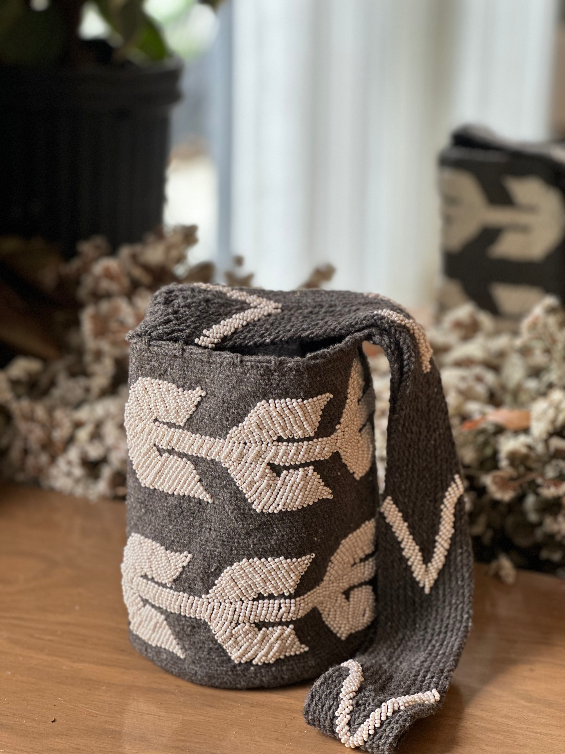 Nuestras mochilas Arhuacas* han sido cuidadosamente tejidas a mano por mujeres indígenas a lo largo de 3 semanas.